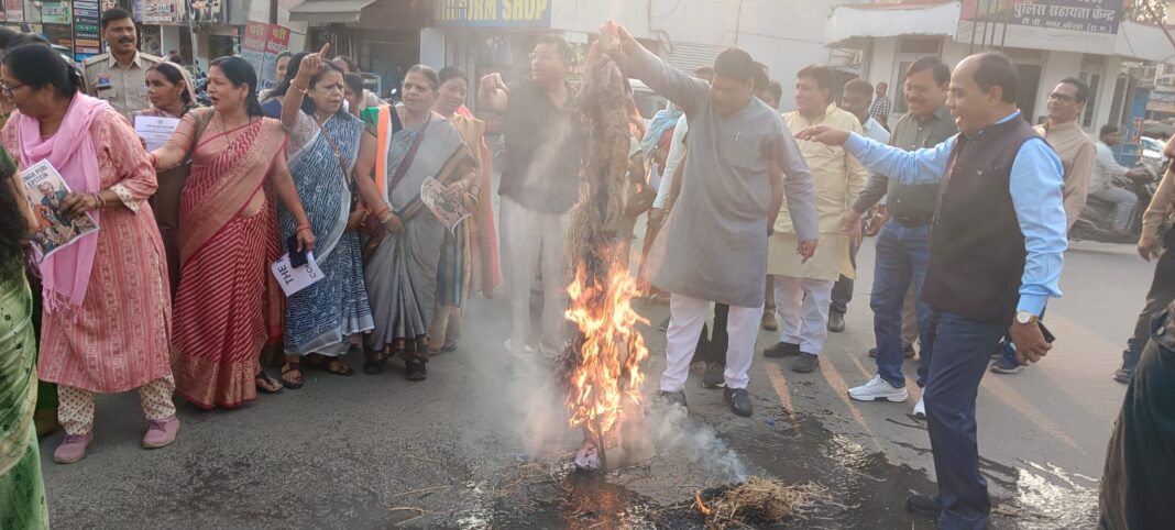 एपस्टीन फाइल विवाद: कोरबा में केंद्रीय मंत्री के खिलाफ महिला कांग्रेस का पुतला दहन
