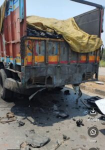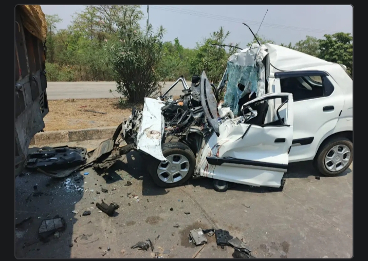 तेज रफ्तार कार पहले डिवाइडर से टकराई, फिर पलट गई और उसके बाद चलती ट्रक के पीछे जा घुसी। हादसा इतना भीषण था कि कार का अगला हिस्सा पूरी तरह क्षतिग्रस्त हो गया।