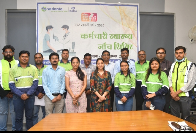 बालकोनगर, 07 अक्टूबर 2025।वेदांता समूह की कंपनी भारत एल्यूमिनियम कंपनी लिमिटेड (बालको) ने छत्तीसगढ़ राज्य के रजत जयंती (25 वर्ष) उत्सव के उपलक्ष्य में छत्तीसगढ़ शासन के सहयोग से स्वास्थ्य जांच शिविर का आयोजन किया। इस पहल के अंतर्गत 300 से अधिक कर्मचारियों और व्यावसायिक साझेदारों का स्वास्थ्य परीक्षण किया गया, जो बालको की कर्मचारी कल्याण, निवारक स्वास्थ्य देखभाल और कार्यस्थल सुरक्षा के प्रति निरंतर प्रतिबद्धता को दर्शाता है।