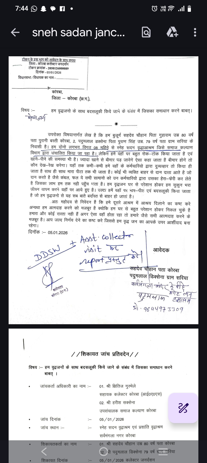 मिली जानकारी के अनुसार 5 जनवरी 2026 को सहदेव चौहान और पदुमलाल डिक्सेना कलेक्टर जनदर्शन में स्नेह सदन वृद्धाश्रम की अव्यवस्थाओं की शिकायत लेकर पहुंचे थे। शिकायत पत्र के साथ उन्हें टोकन क्रमांक 2050126000089 और सुरक्षा क्रमांक 892 जारी किया गया था। दोनों बुजुर्गों ने बताया था कि वे पिछले करीब आठ महीने से समाज कल्याण विभाग द्वारा संचालित स्नेह सदन वृद्धाश्रम में रह रहे हैं, जहां भोजन व्यवस्था ठीक नहीं है और कर्मचारियों का व्यवहार भी बुजुर्गों के प्रति उचित नहीं है। उन्होंने यह भी आरोप लगाया था कि कर्मचारियों द्वारा बुजुर्गों के साथ मारपीट तक की जाती है और सामानों की हेराफेरी भी होती है।