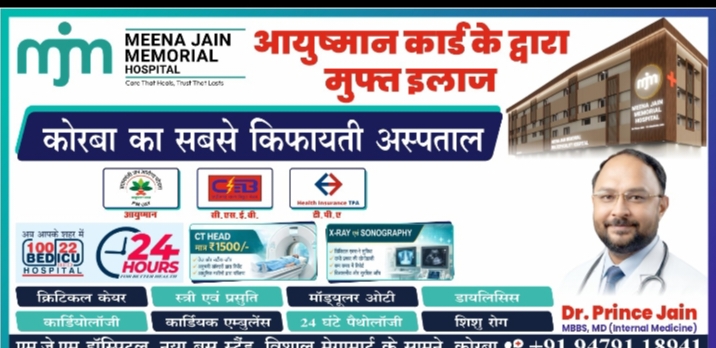 कोरबा। शहर में सस्ती और बेहतर स्वास्थ्य सेवाओं की तलाश अब खत्म होती नजर आ रही है। मीना जैन मेमोरियल (एमजेएम) हॉस्पिटल ने खुद को न सिर्फ किफायती बल्कि पूरी तरह कैशलेस इलाज केंद्र के रूप में स्थापित कर लिया है। अब आयुष्मान कार्ड और विभिन्न हेल्थ इंश्योरेंस योजनाओं के माध्यम से मरीजों को न्यूरो, मेडिसिन, स्त्री रोग सहित कई गंभीर बीमारियों का इलाज निःशुल्क मिल रहा है।